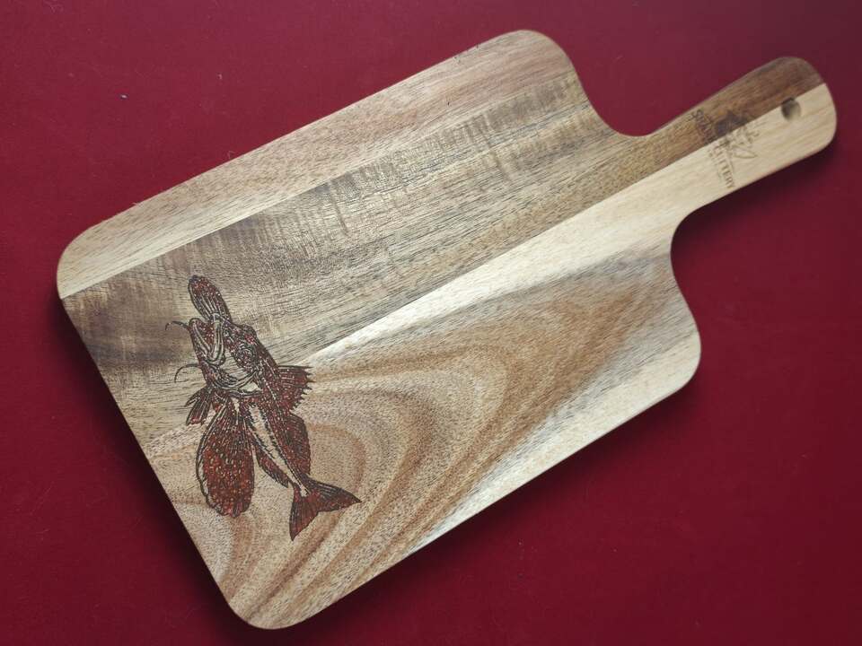 Exquisite laser-engraved slate and wood pieces featuring stunning fish artwork. Each board tells a story of craftsmanship and coastal inspiration.