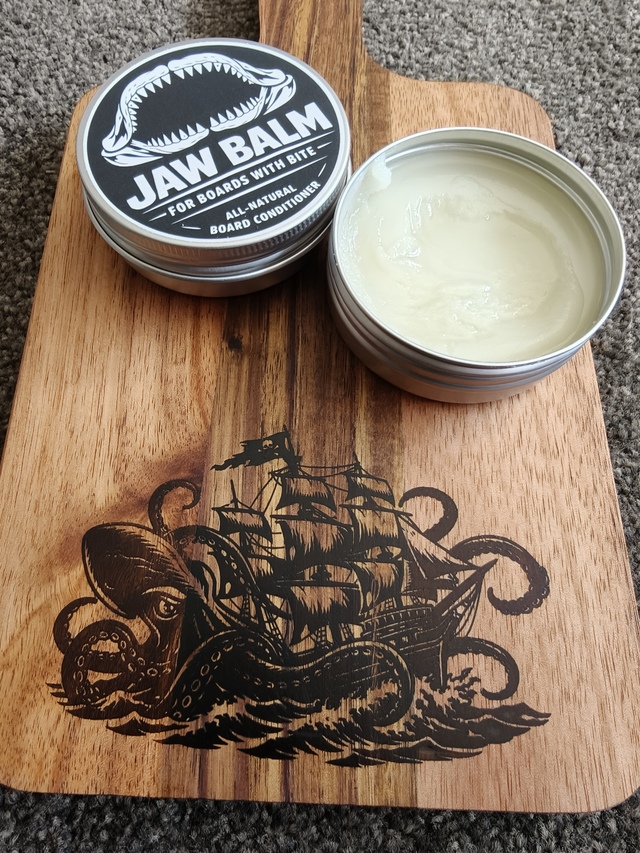 Serving board with The Kraken attacking a pirate ship engraved and filled with clear resin